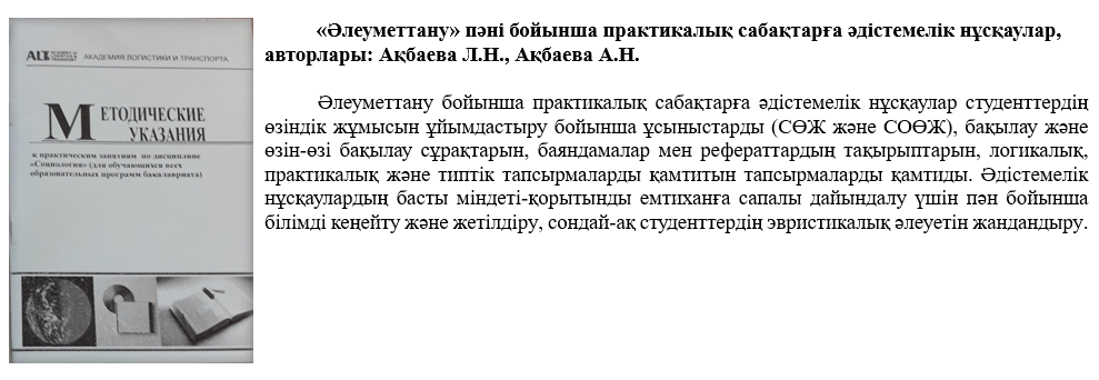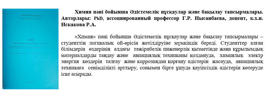 ҒЗЖ нәтижелері бойынша 2025 жылы кафедраның ПОҚ 73-ден астам мақала жариялады, оның ішінде 3 импакт-фактормен және 10 – Ресейлік ғылыми дәйексөз индексі, оның ішінде ҚР БҒМ Білім және ғылым саласындағы бақылау комитеті ұсынған басылымдарда – 10 мақала, шетелде халықаралық конференцияларда - 10 мақала, ҚР-да-40 баяндама, 1-патент.