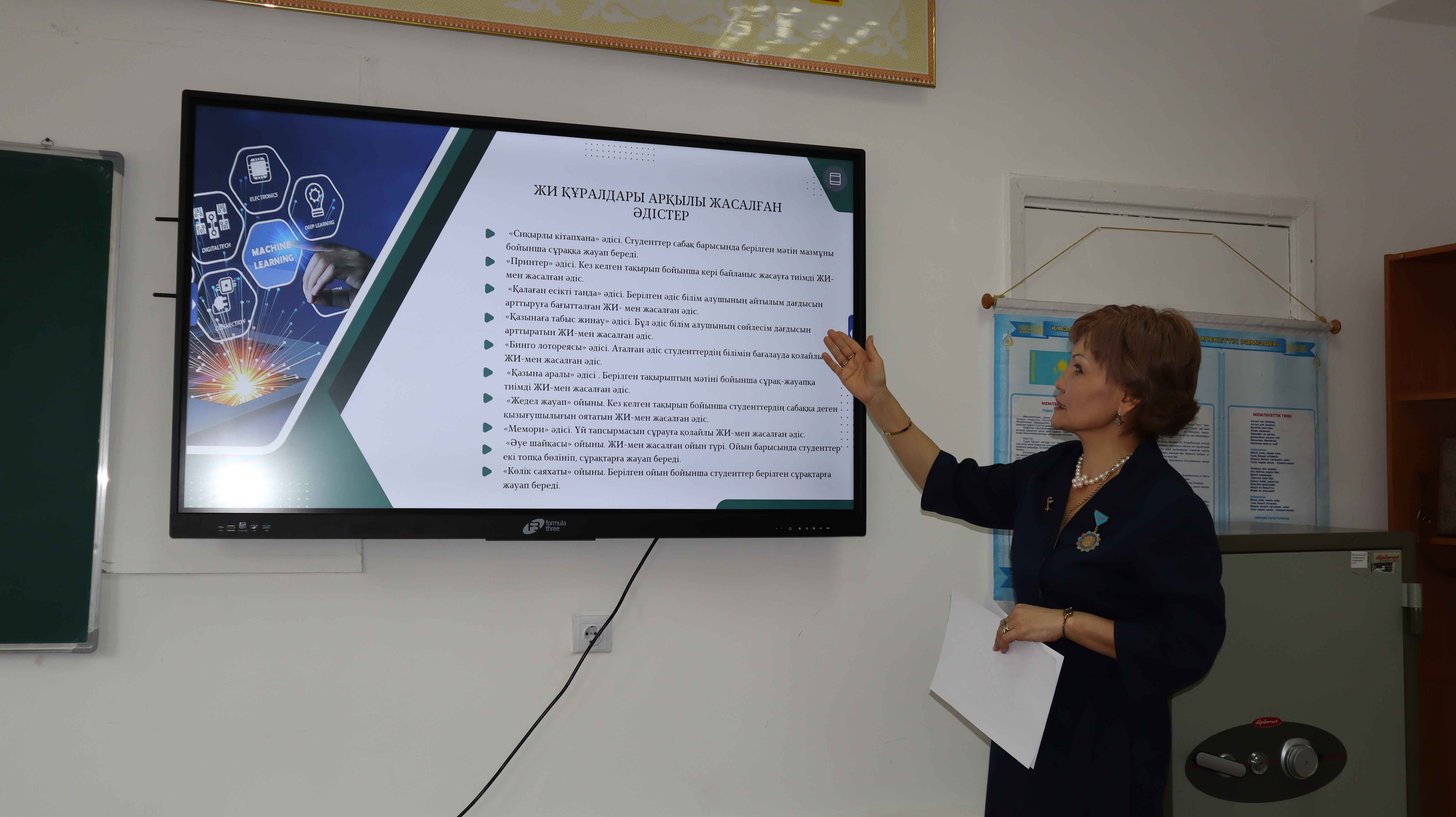 2025 жылдың желтоқсан айының 1-і күні педагогикалық шеберлік аясында «Авиациялық ағылшын тілі» кафедрасының «Қазақ тілі секциясы оқытушылары — ф.ғ.к., профессор Г.Қ. Тулекова, phd докторы, қауымдастырылған профессор А. М. Елубай, сеньор-лектор Н. Р. Суранчиева және сеньор-лектор М. М. Қондыбайдың ұйымдастыруымен «Қазақ тілі сабақтарында студенттердің тілдік дағдыларын арттыруға бағытталған заманауи әдіс-тәсілдер мен цифрлық білім беру трансформациясы аясында жасанды интеллект құралдарын қолданудың мүмкіндіктері» атты семинар өткізілді. Семинардың негізгі мақсаты – қазақ тілі сабақтарында цифрлық трансформация үдерісіне сәйкестендірілген жасанды интеллект (ЖИ) технологияларын тиімді енгізу және білім сапасын арттыруға бағытталған заманауи оқыту құралдарын пайдалану болды. Іс-шара барысында ААА профессоры, ф.ғ.к. Г. Тулекова білім беру үдерісіндегі жасанды интеллектінің рөлі, қазақ тілі сабақтарында қолдануға болатын ChatGPT, Google Gemini, Copilot, Quizlet AI, Kahoot AI сынды платформалардың мүмкіндіктерін таныстырды. Сондай-ақ, дербестендірілген оқыту, грамматикалық қатені автоматты түзету, тапсырма генерациялау, айтылым, оқылым, жазылым және тыңдалым дағдыларын дамытуға арналған AI құралдарының тиімділігі көрсетілді. Қатысушыларға геймификацияланған оқыту әдістері, ЖИ арқылы жасалған «Сиқырлы кітапхана», «Принтер», «Қалаған есікті таңда», «Қазына аралы», «Жедел жауап», «Әуе шайқасы» сынды интерактивті әдістер ұсынылды. Семинарда бейнематериалдар көрсетіліп, «Еркін микрофон» форматында пікірталас ұйымдастырылды. Іс-шара жасанды интеллект технологияларын оқу үдерісіне тиімді енгізудің маңыздылығын айқындап, қазақ тілін оқытудағы инновациялық тәсілдерді дамытуға мол мүмкіндік берді. Семинар соңында қатысушыларға сертификат табысталды.